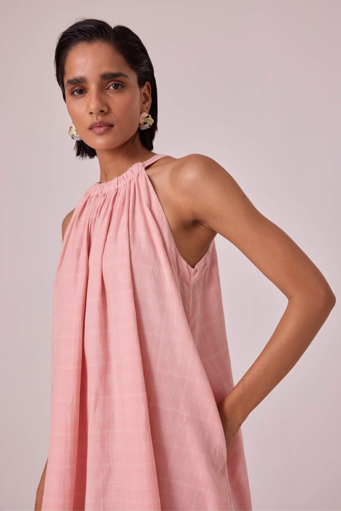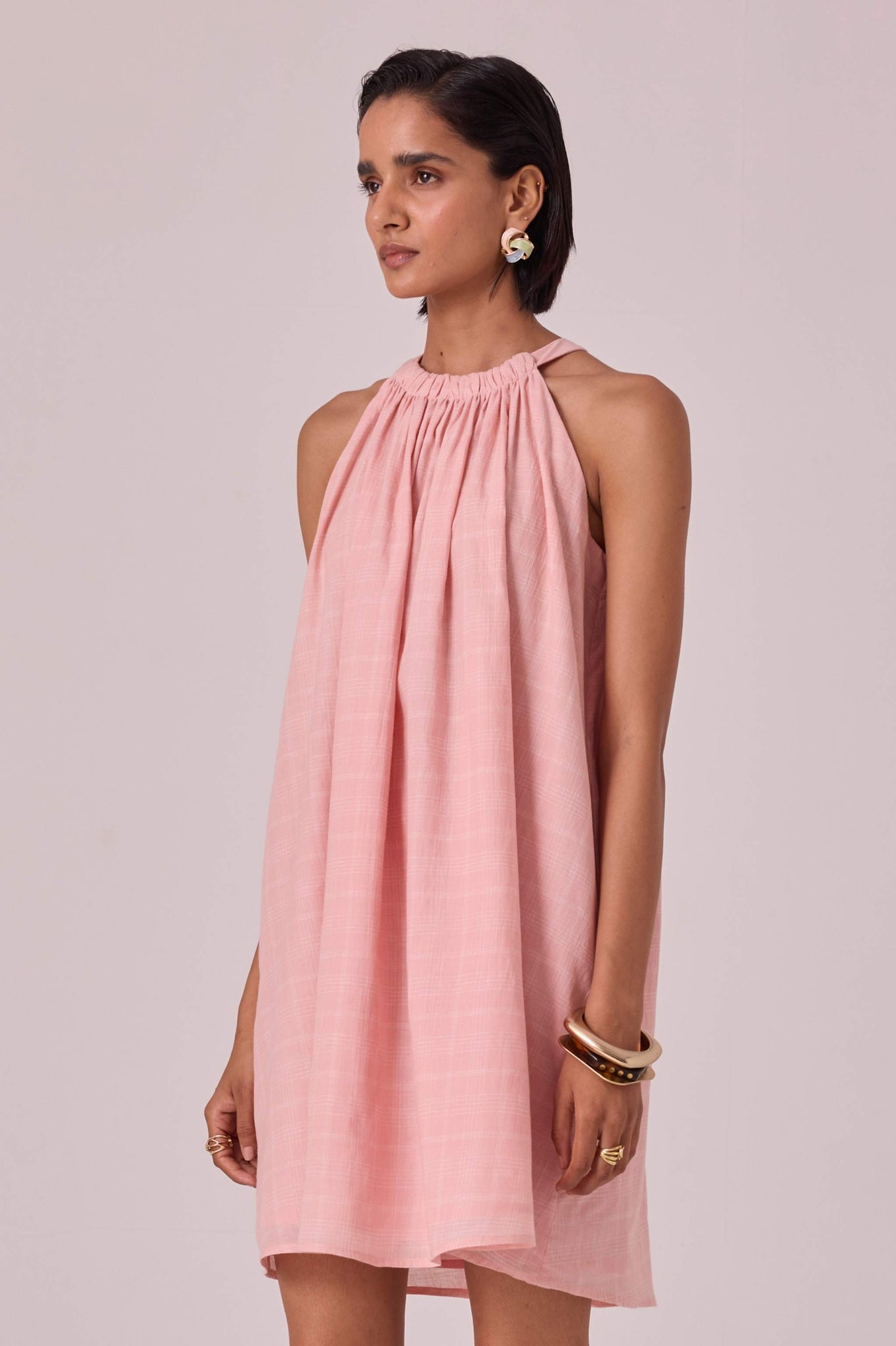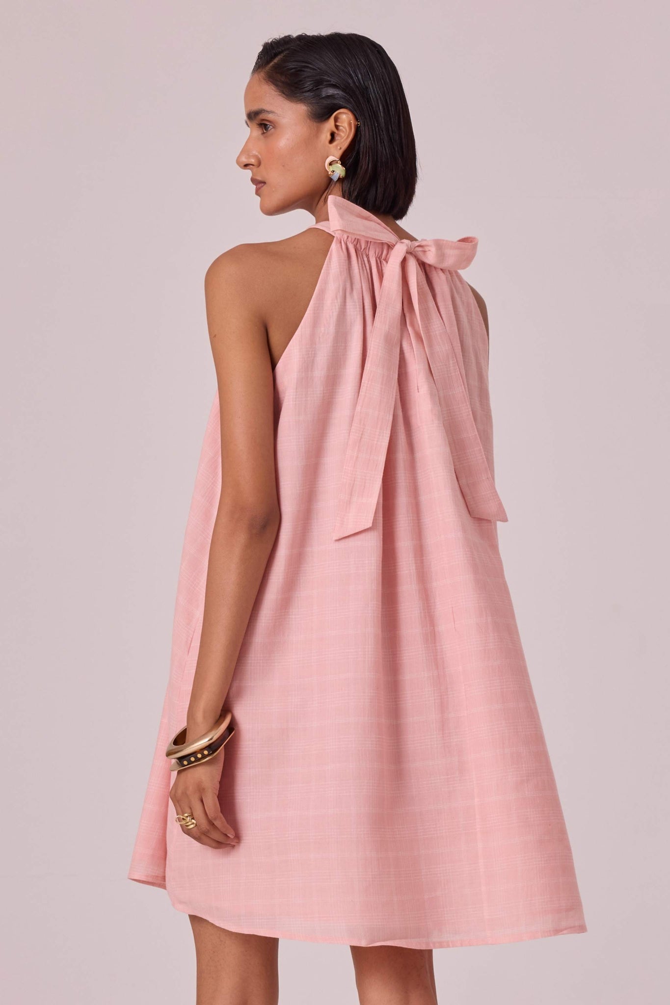 A dress that feels light and playful, yet always polished. The open bow-tied back adds surprise, while the gathered neckline brings gentle softness at the shoulders.