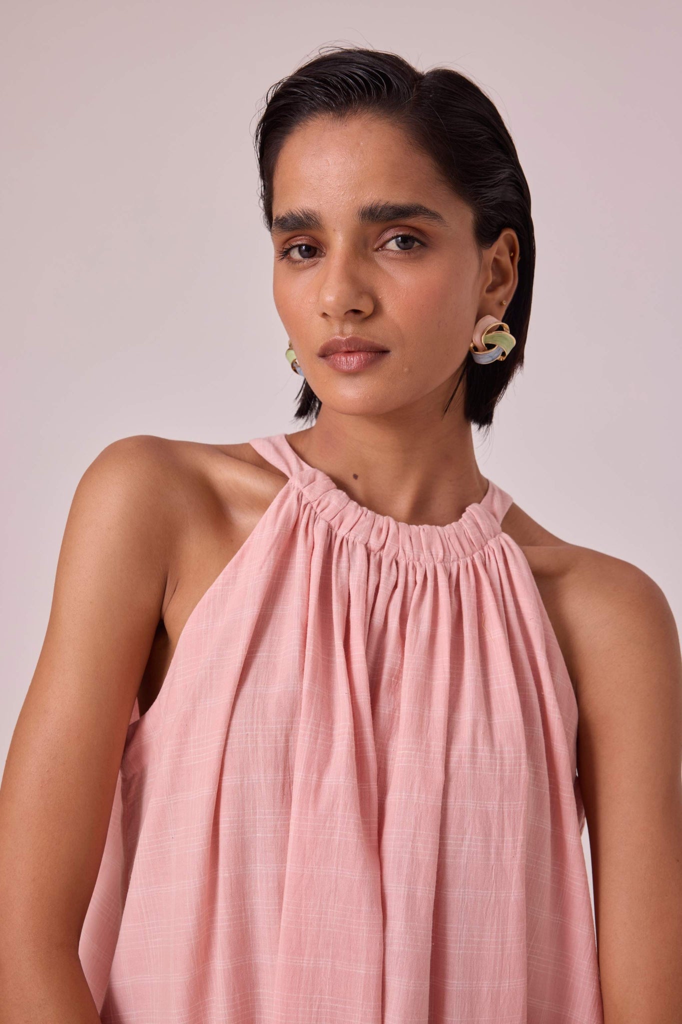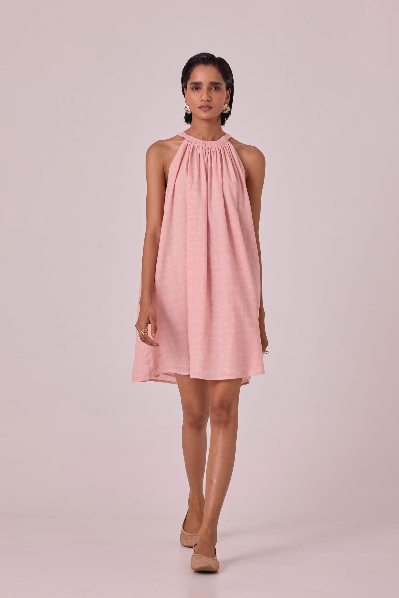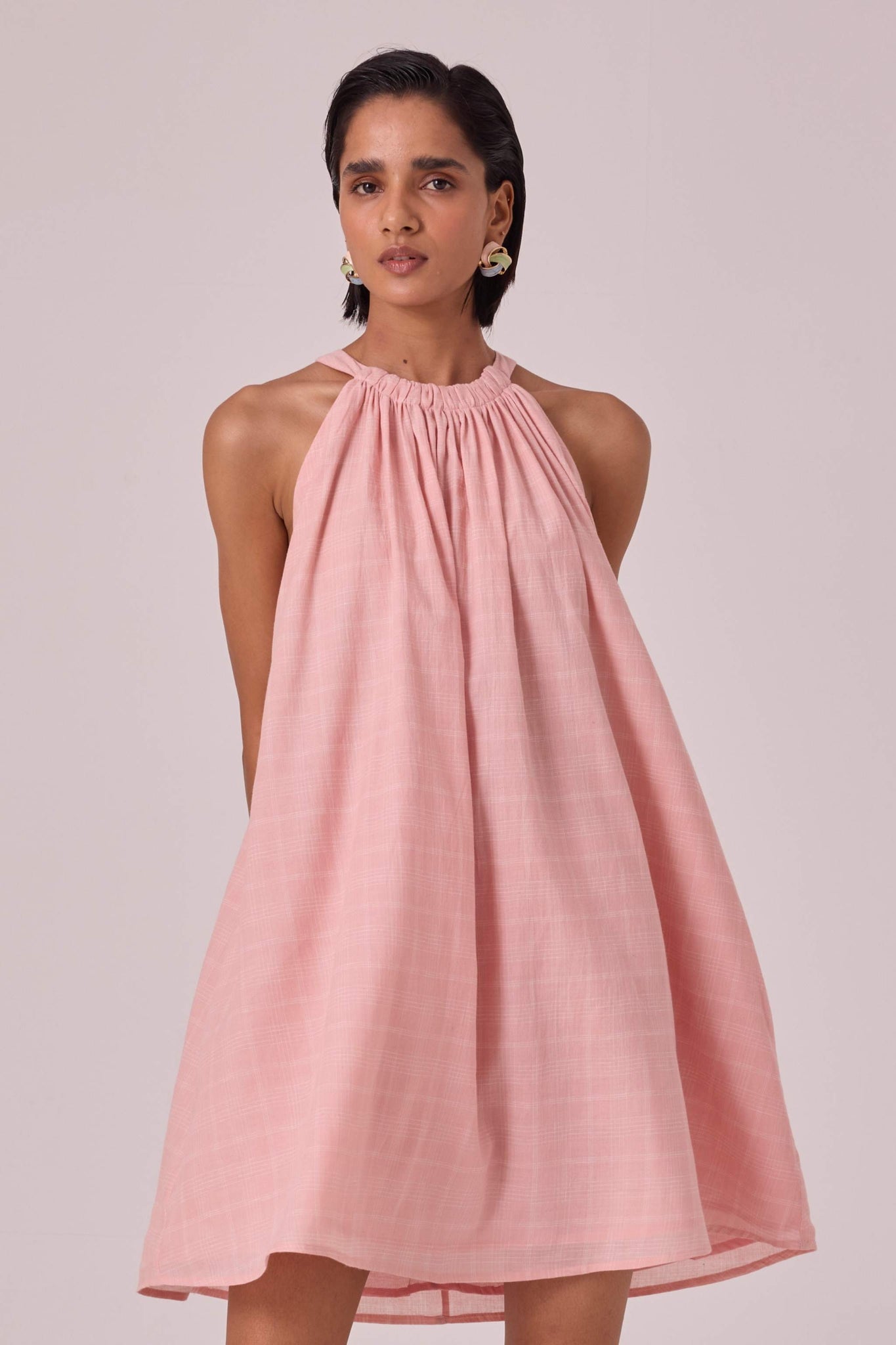 A dress that feels light and playful, yet always polished. The open bow-tied back adds surprise, while the gathered neckline brings gentle softness at the shoulders.