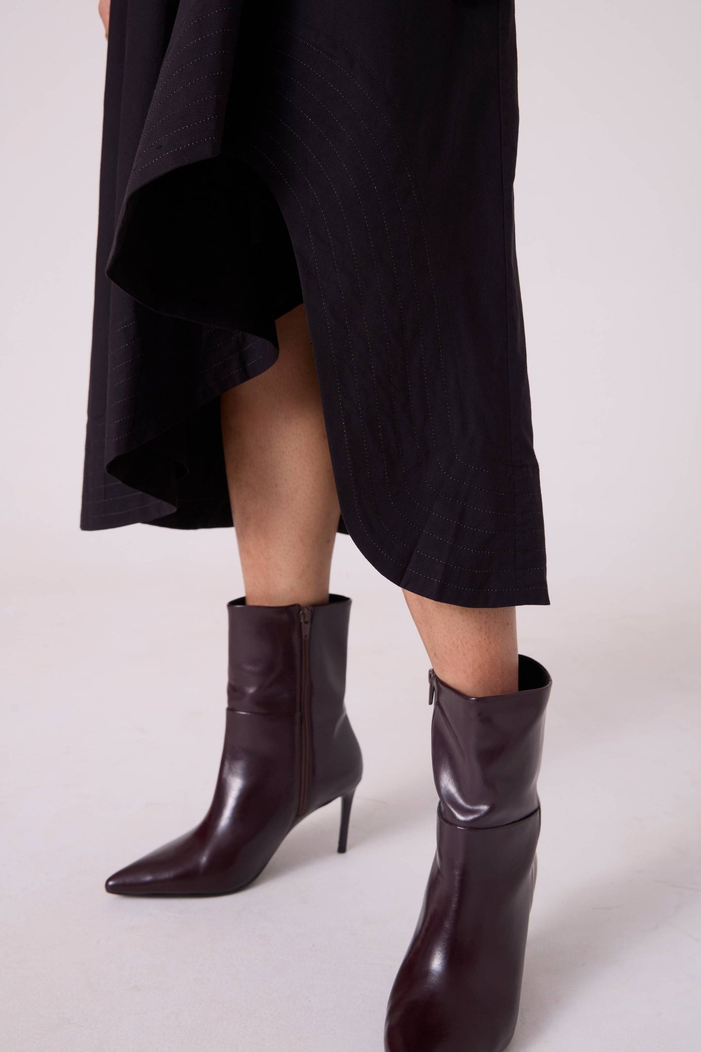 - High-low hem with contrast stitch detailing
