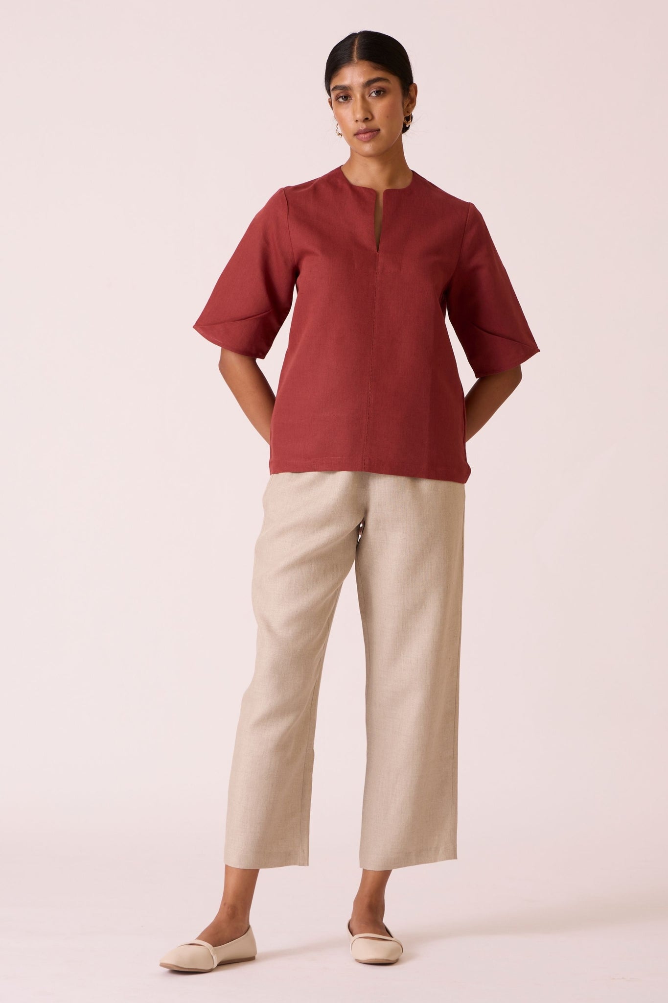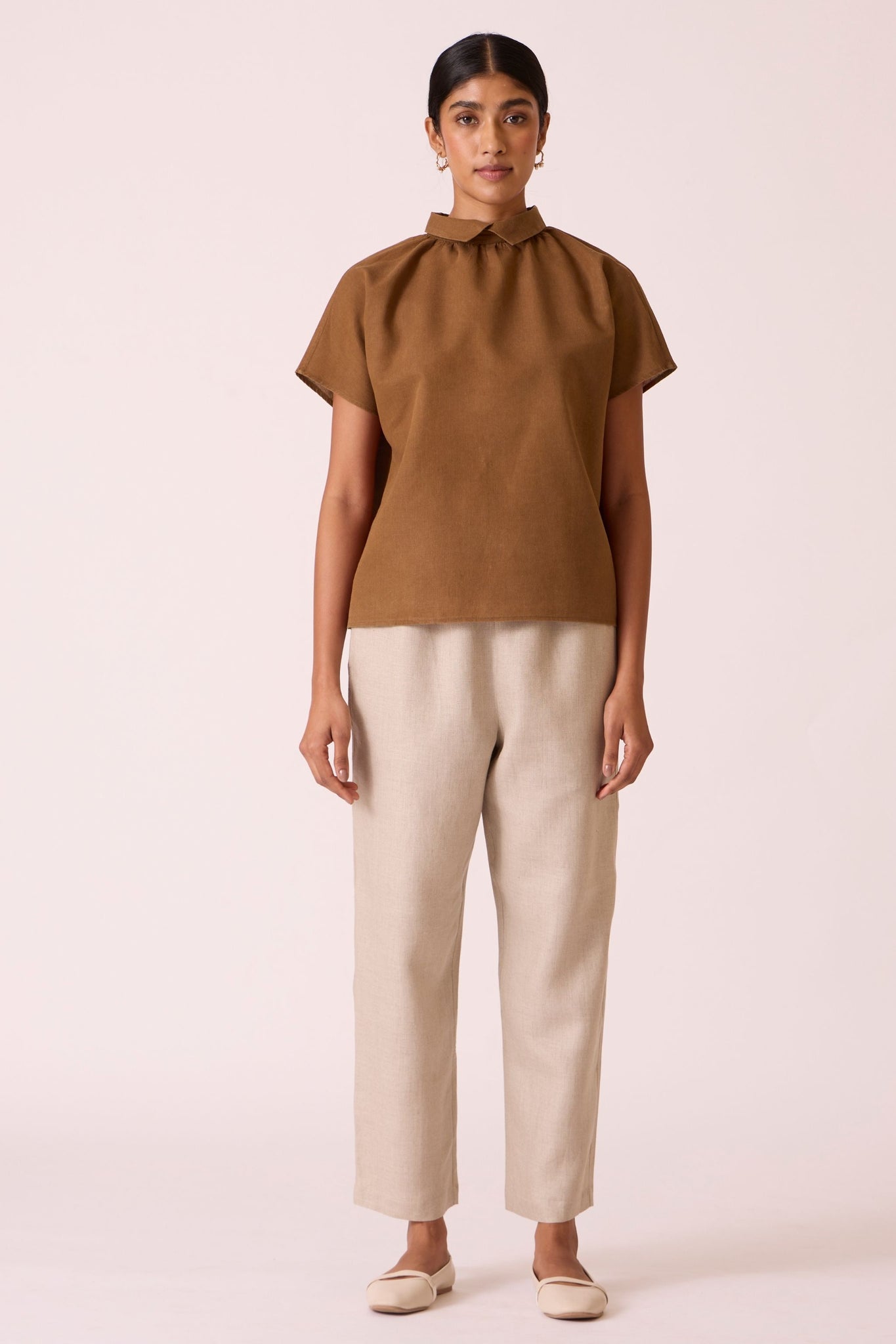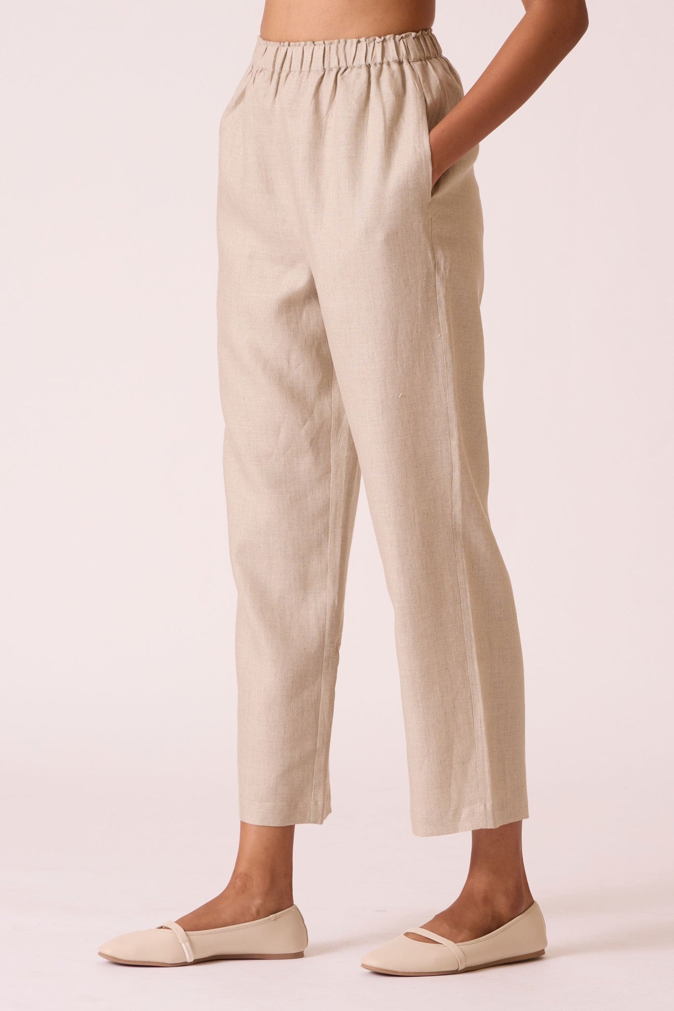 Straight-leg linen trousers with a lightweight, easy-going design and an elasticated waistband.