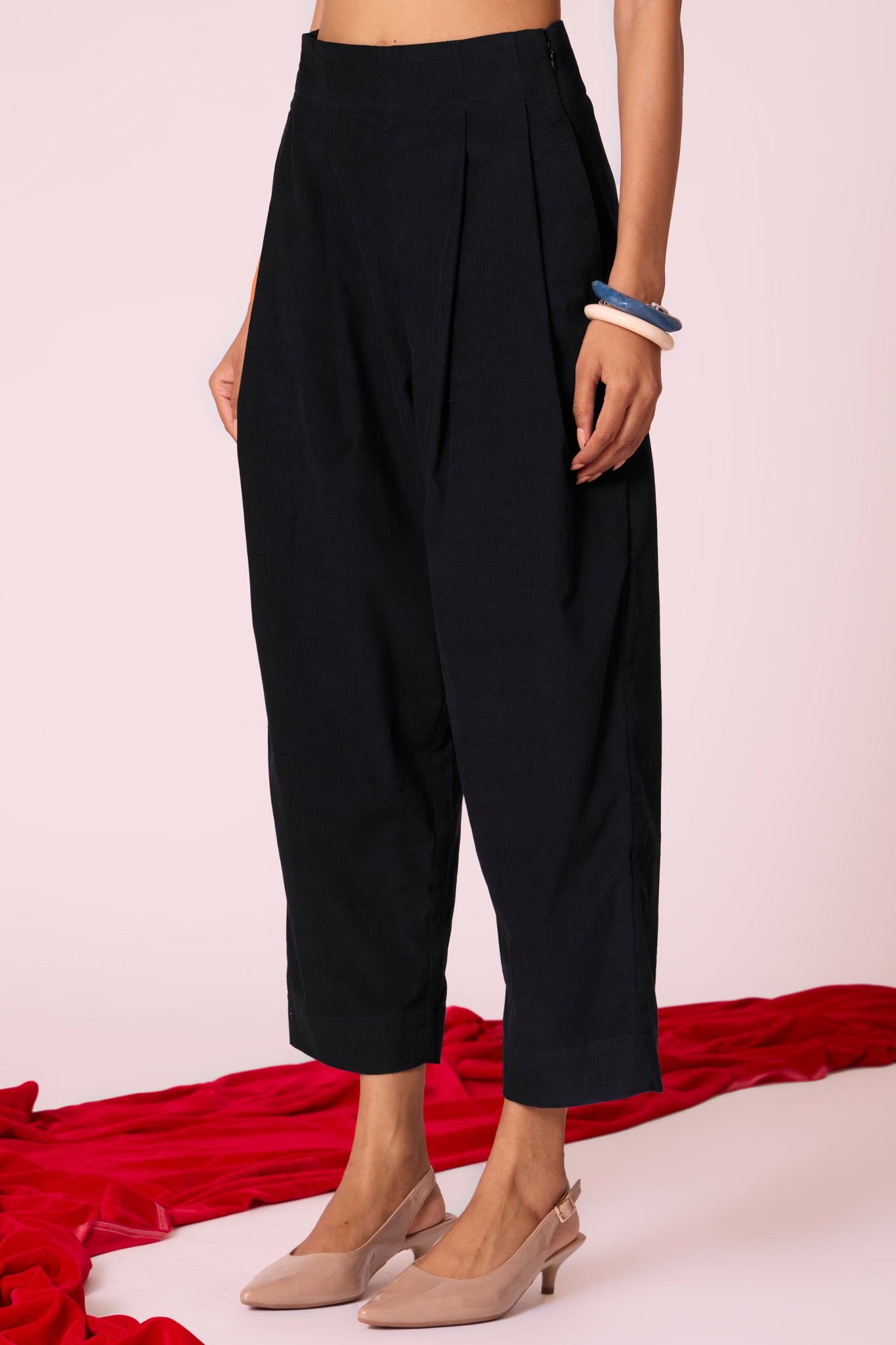Sharply tailored and quietly structured, the Bandra pants are a house favourite - balancing precision with ease. Crisp pleats contour the waist while the cropped, high-rise silhouette maintains a clean, modern line.