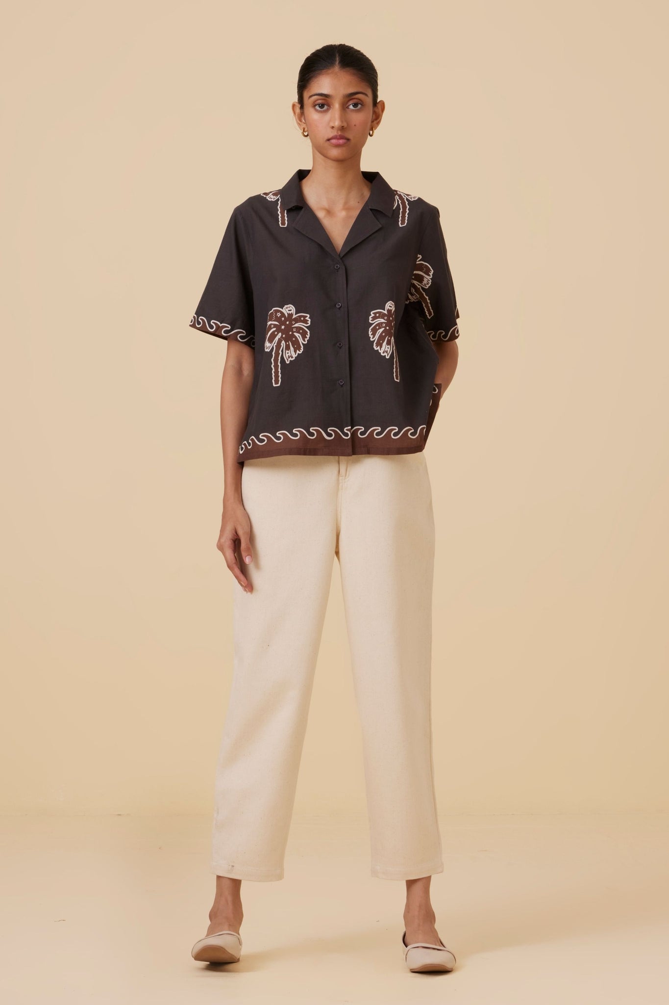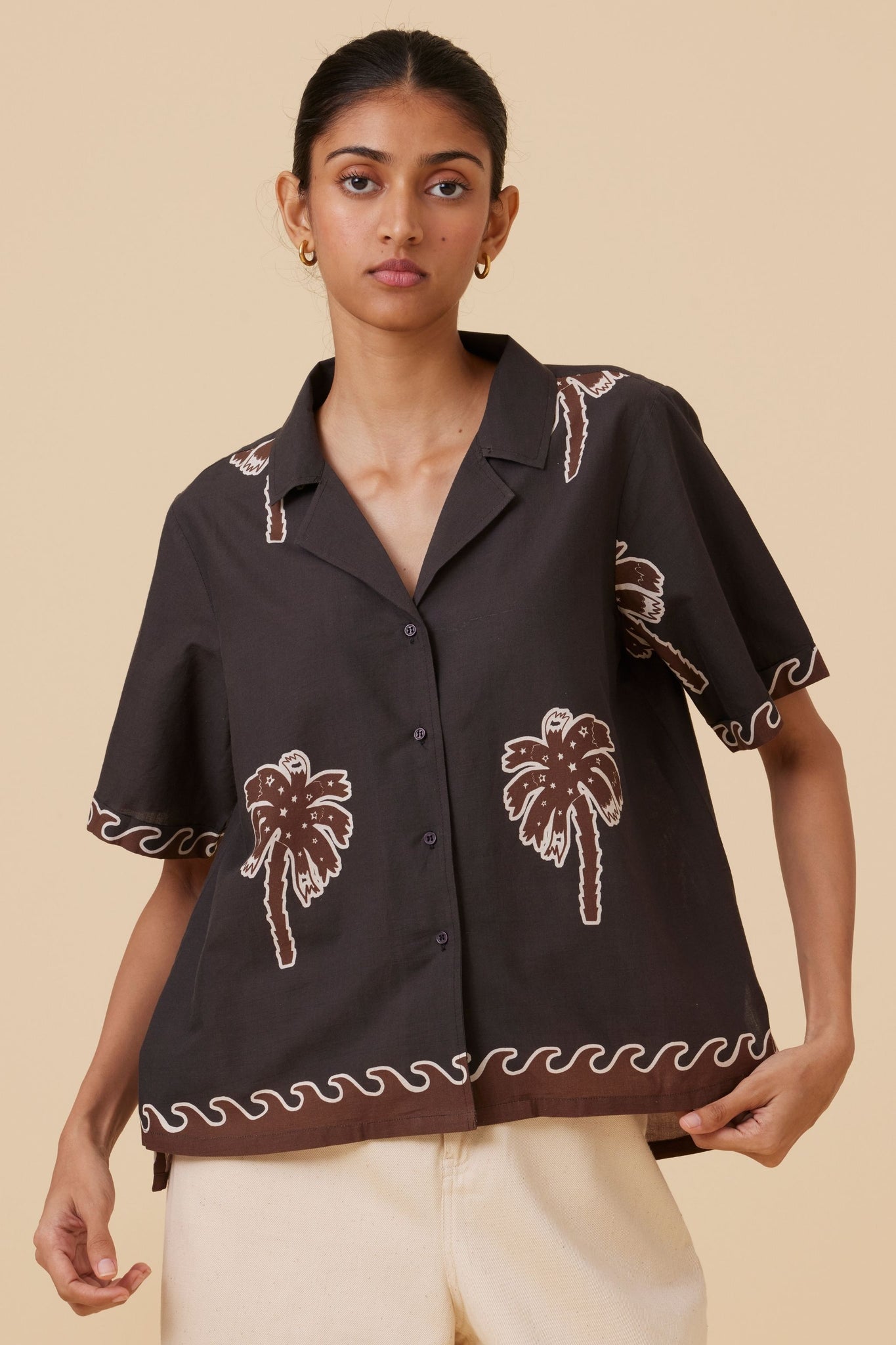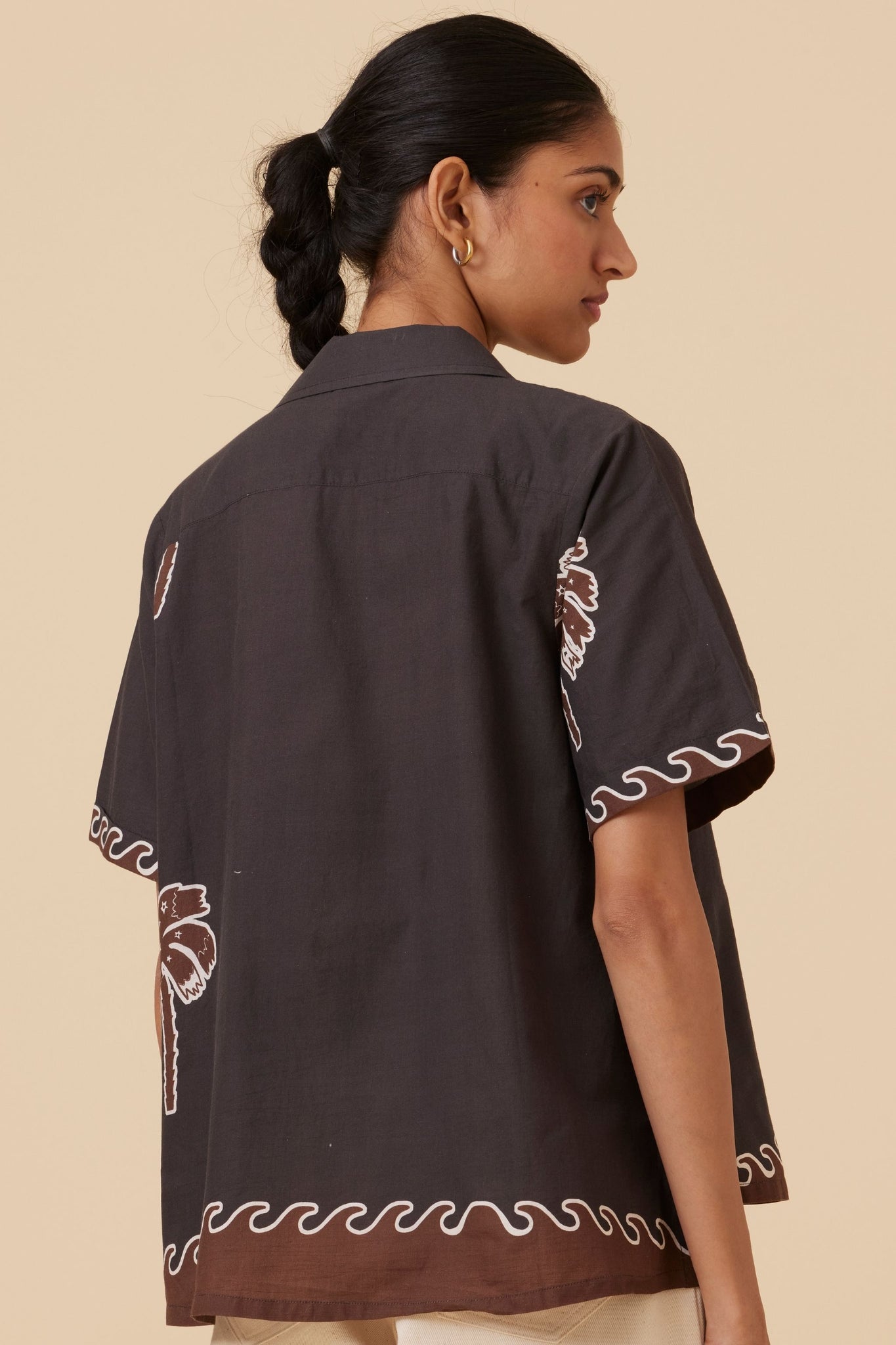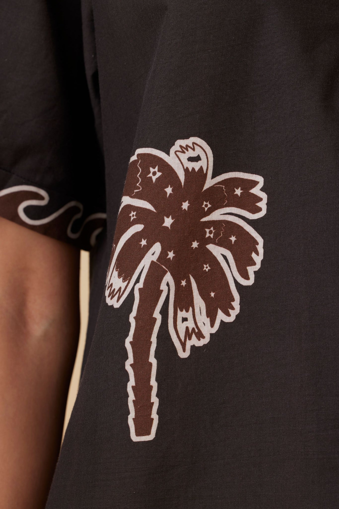Notch collar shirt made in organic cotton. Short sleeve. Back yoke. Crafted in soft cotton featuring a signature print developed in-studio.