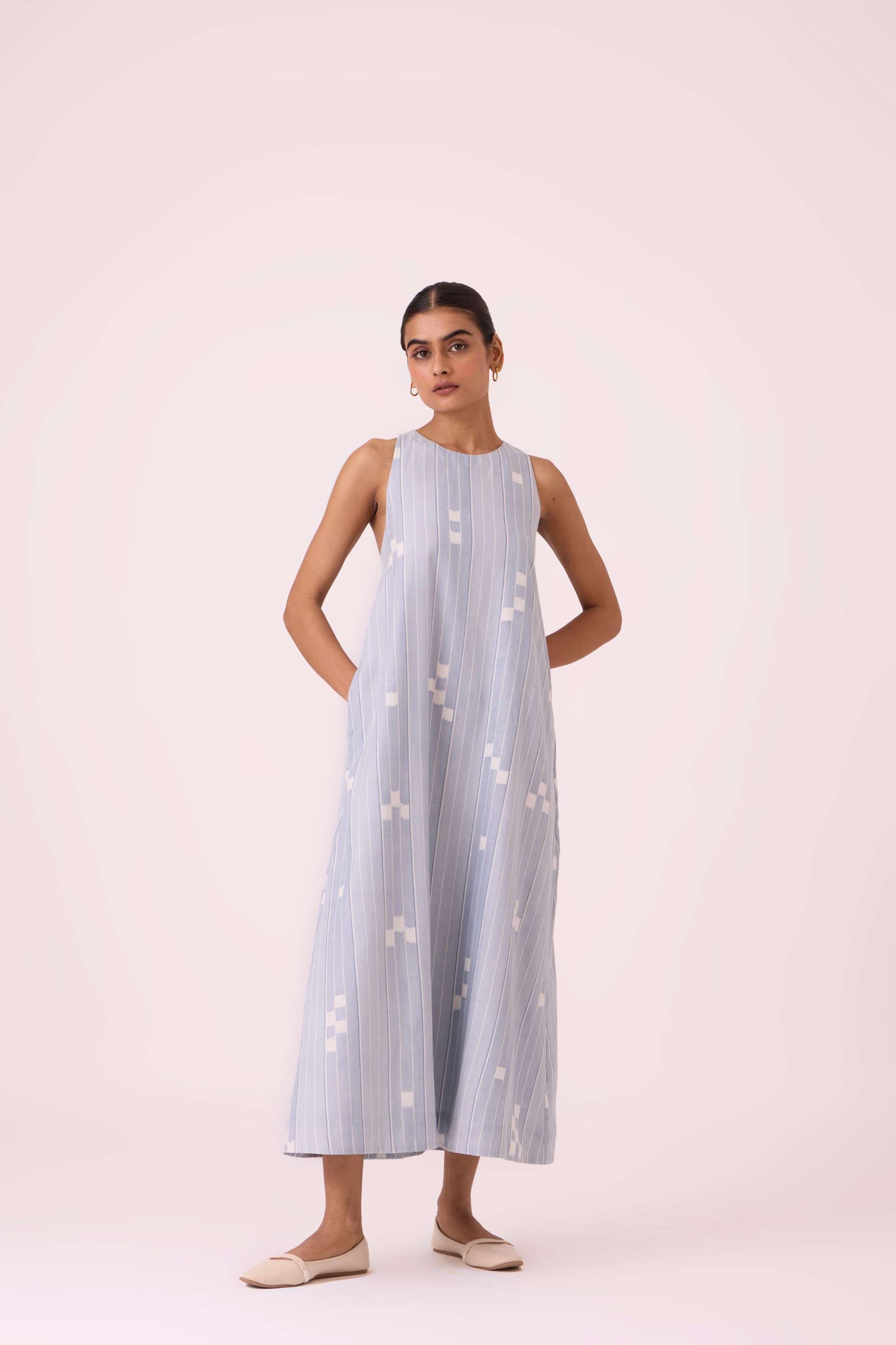 This Ikat design is developed in our studio and handwoven by artisans in Telangana. Slight irregularities are common and speak to the hand processes involved.