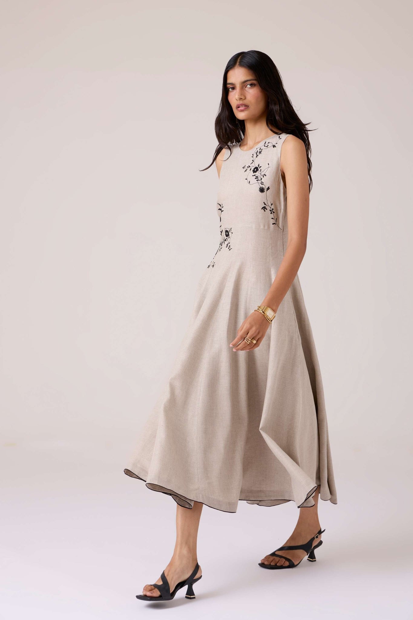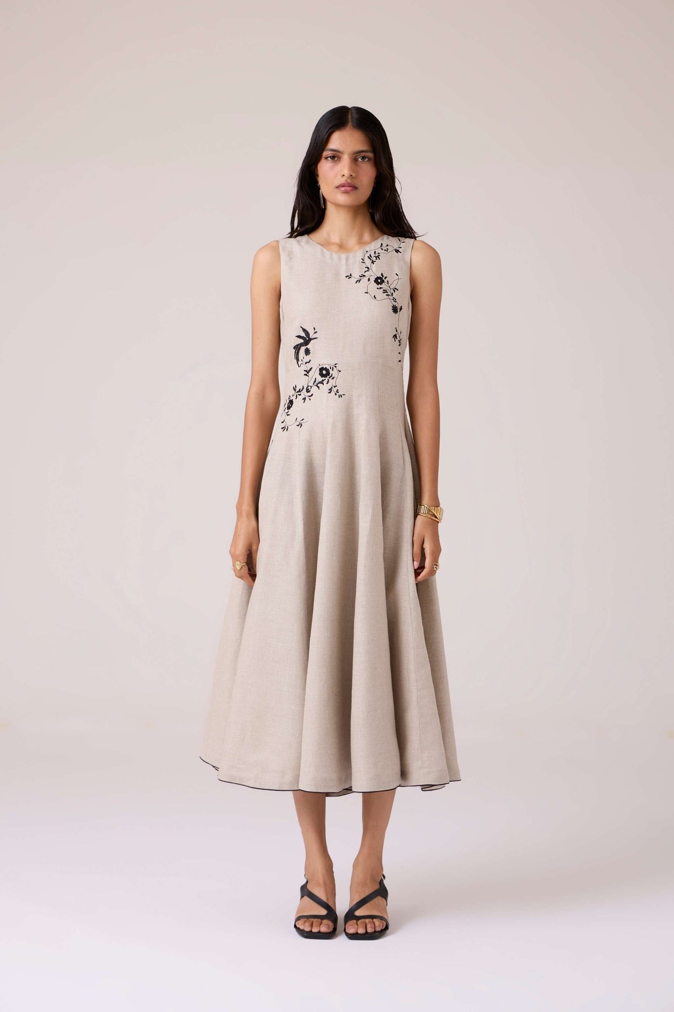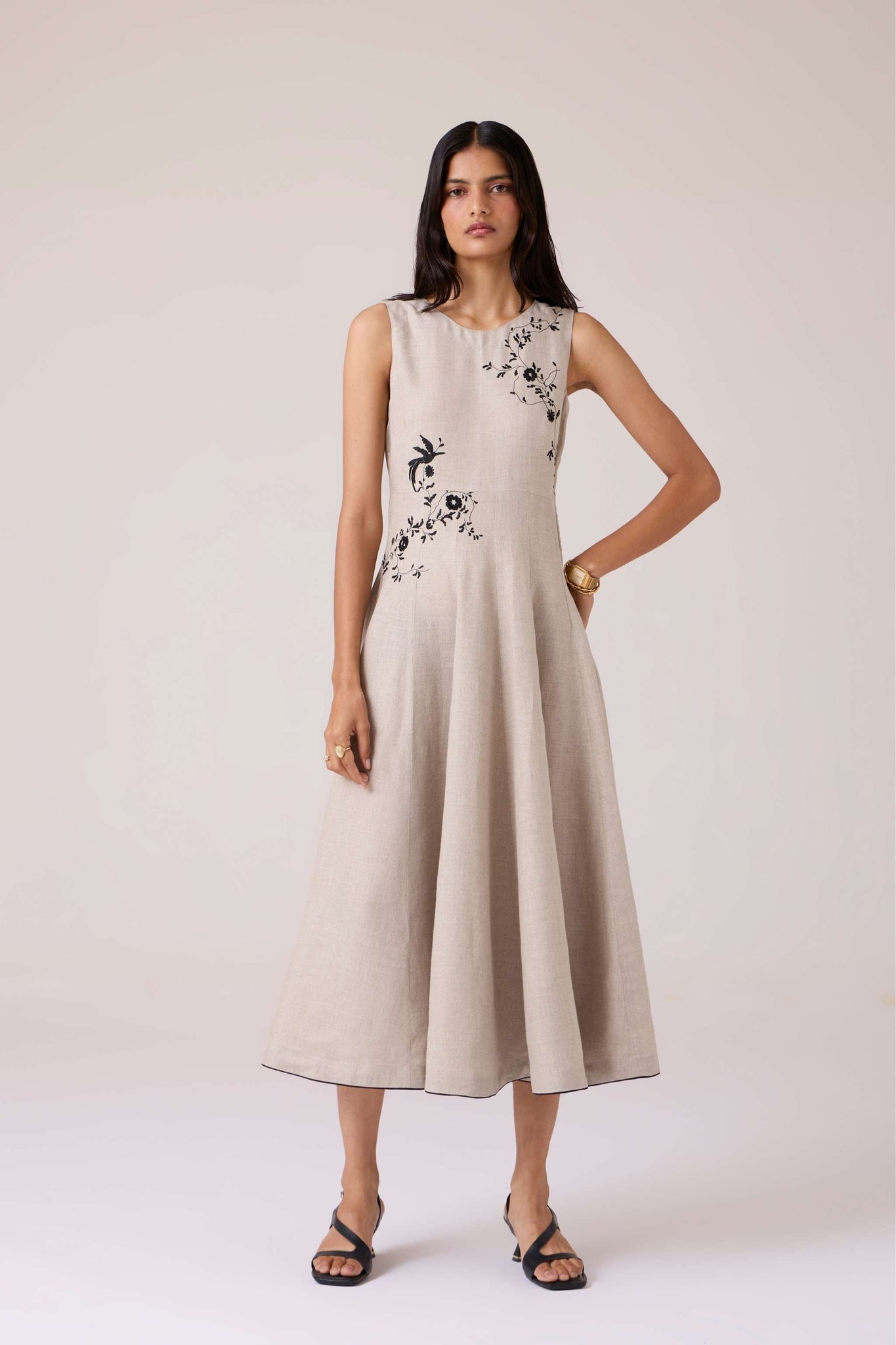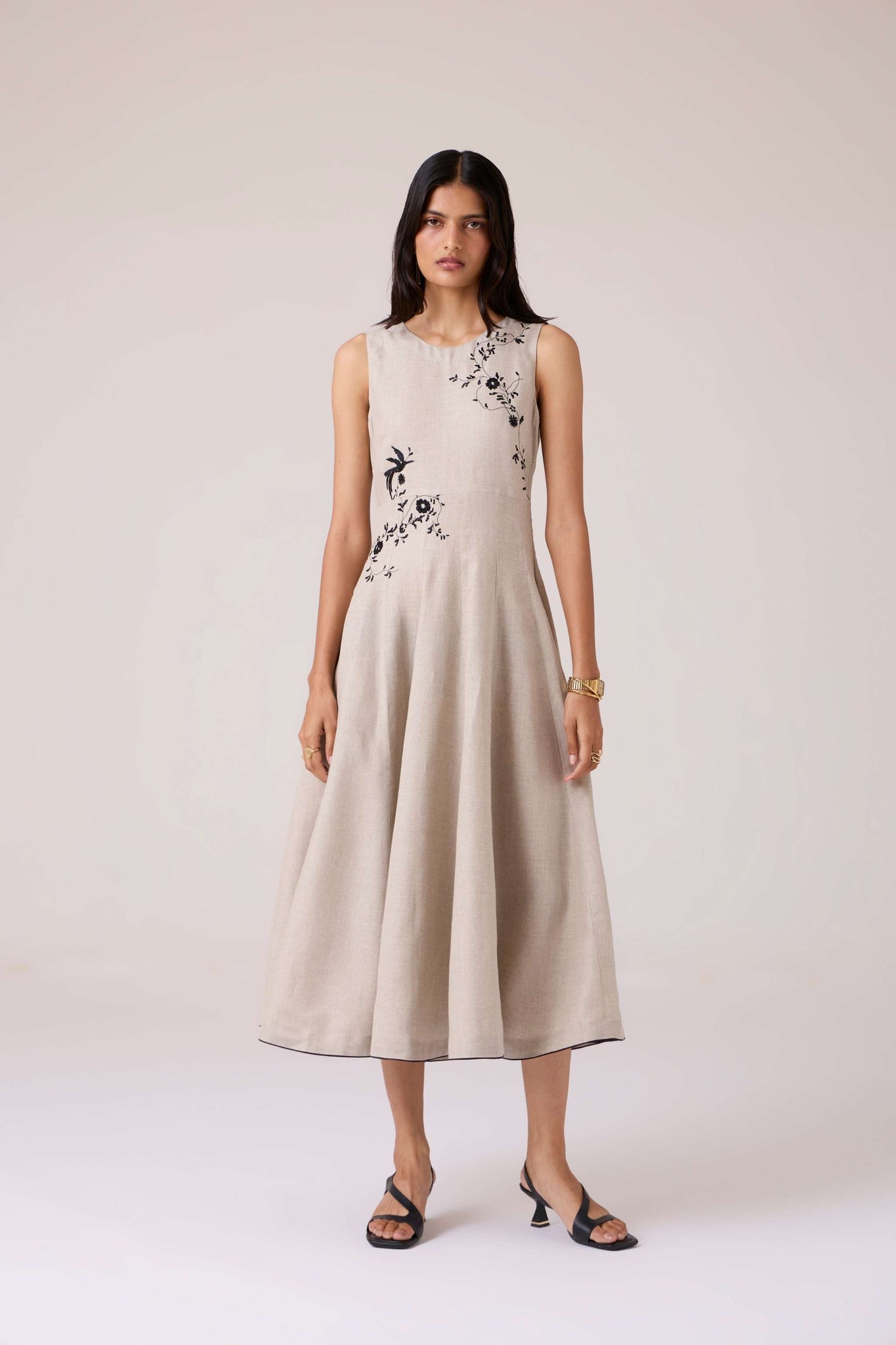 - Hand-embroidered yoke and waist placement