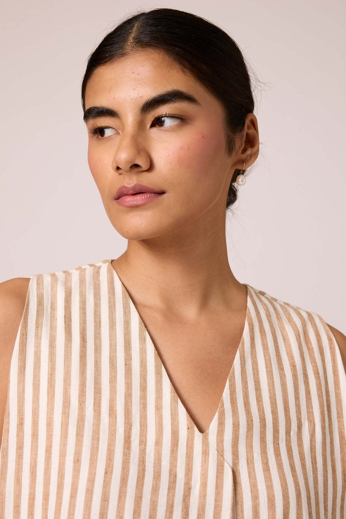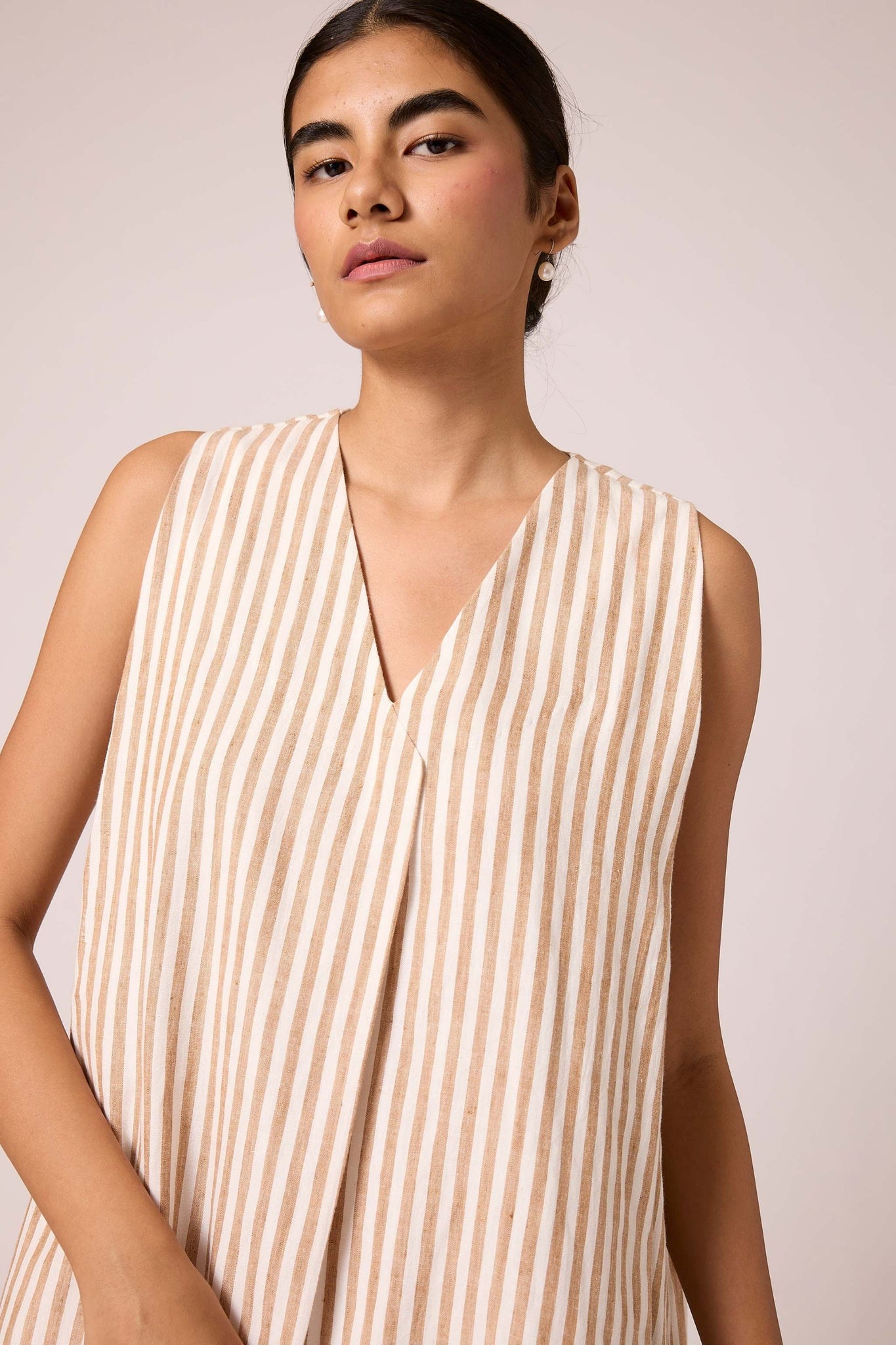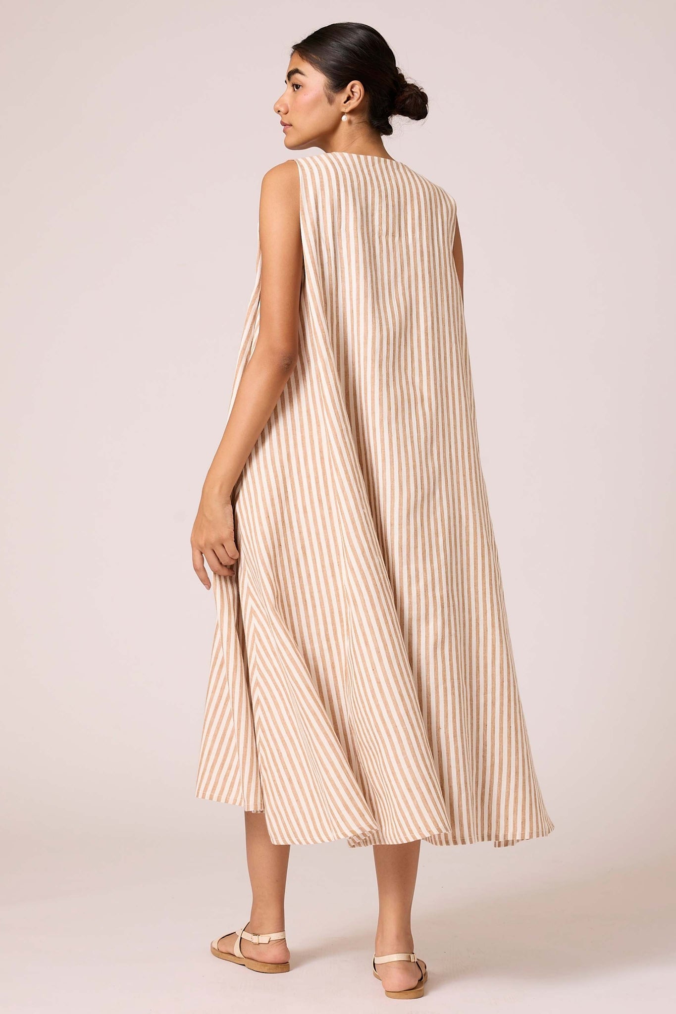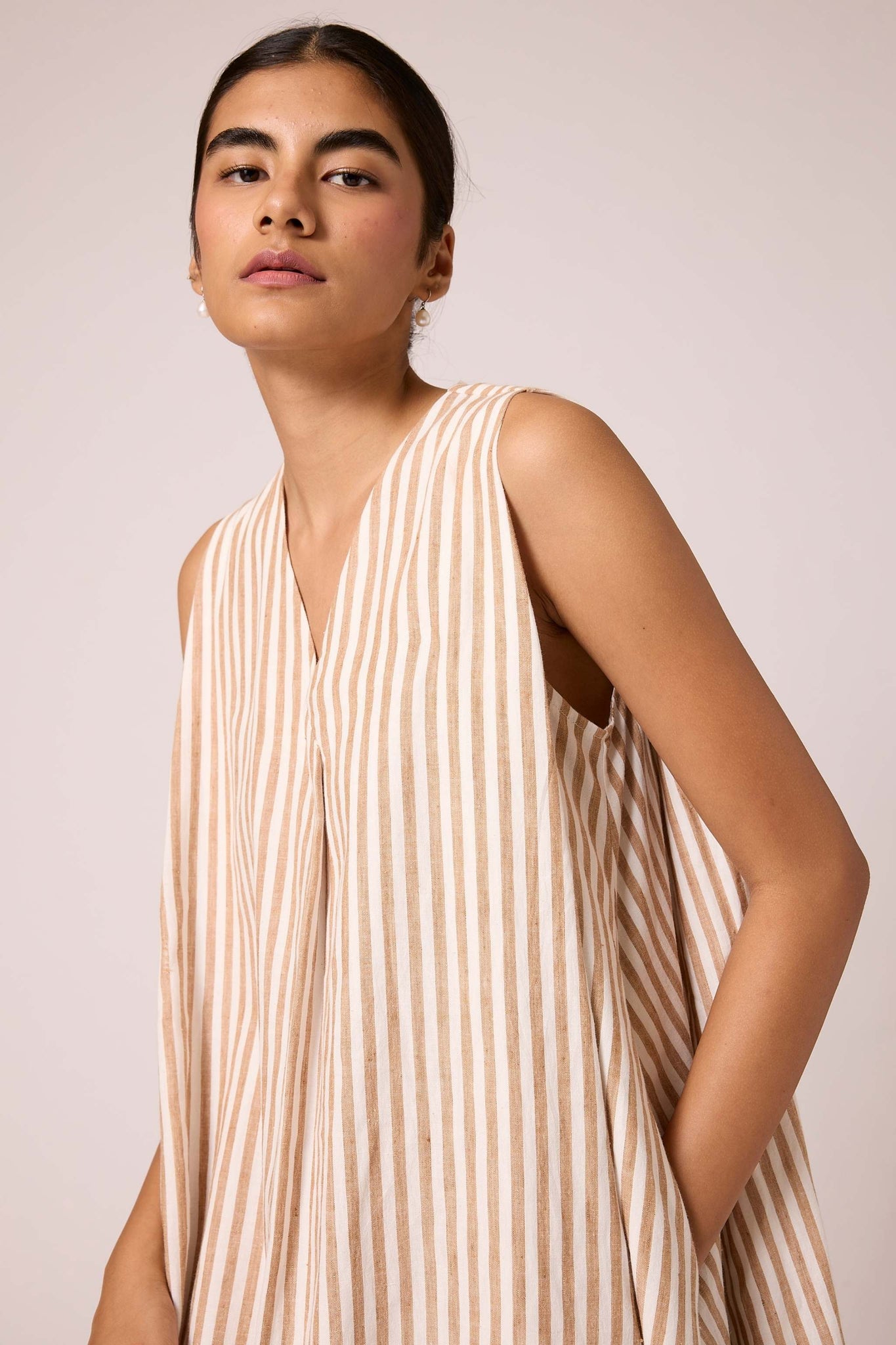 A summer essential tent dress with a v neckline in handwoven linen cotton. Inseam pockets. Fully lined for comfort.