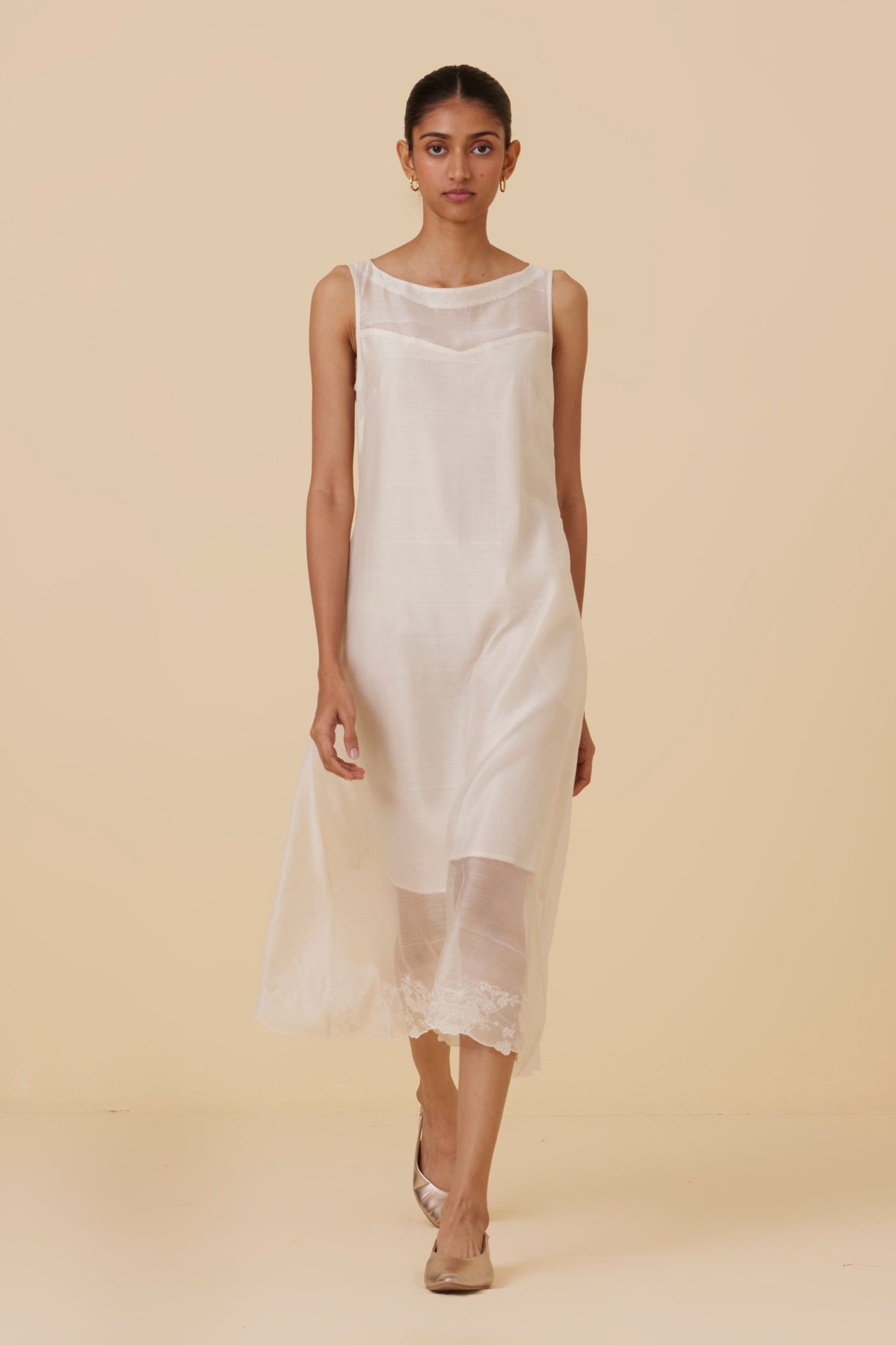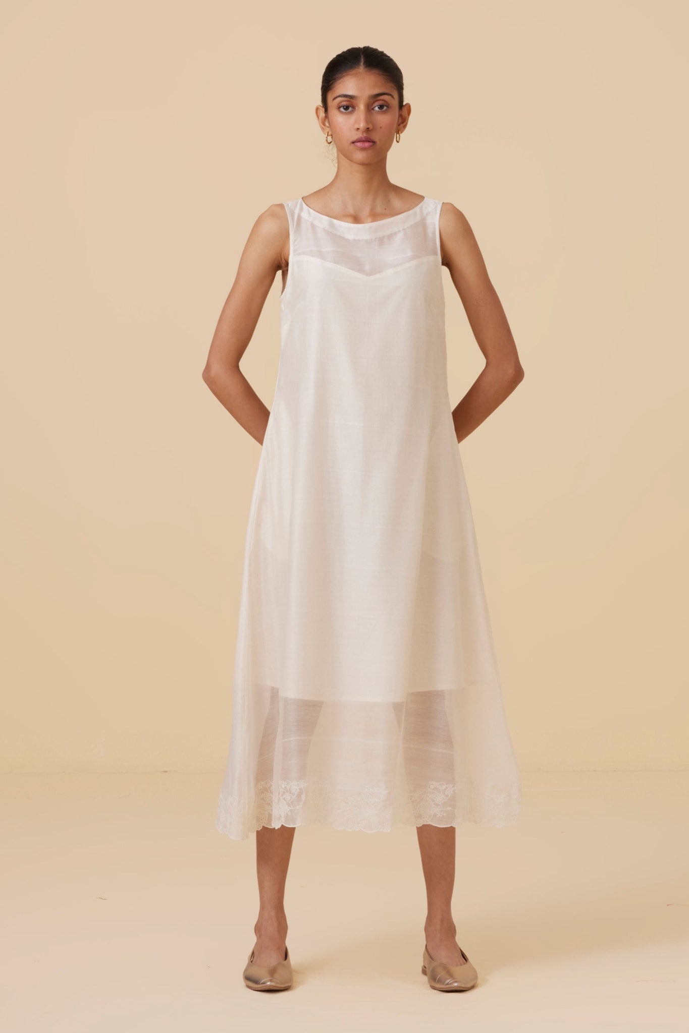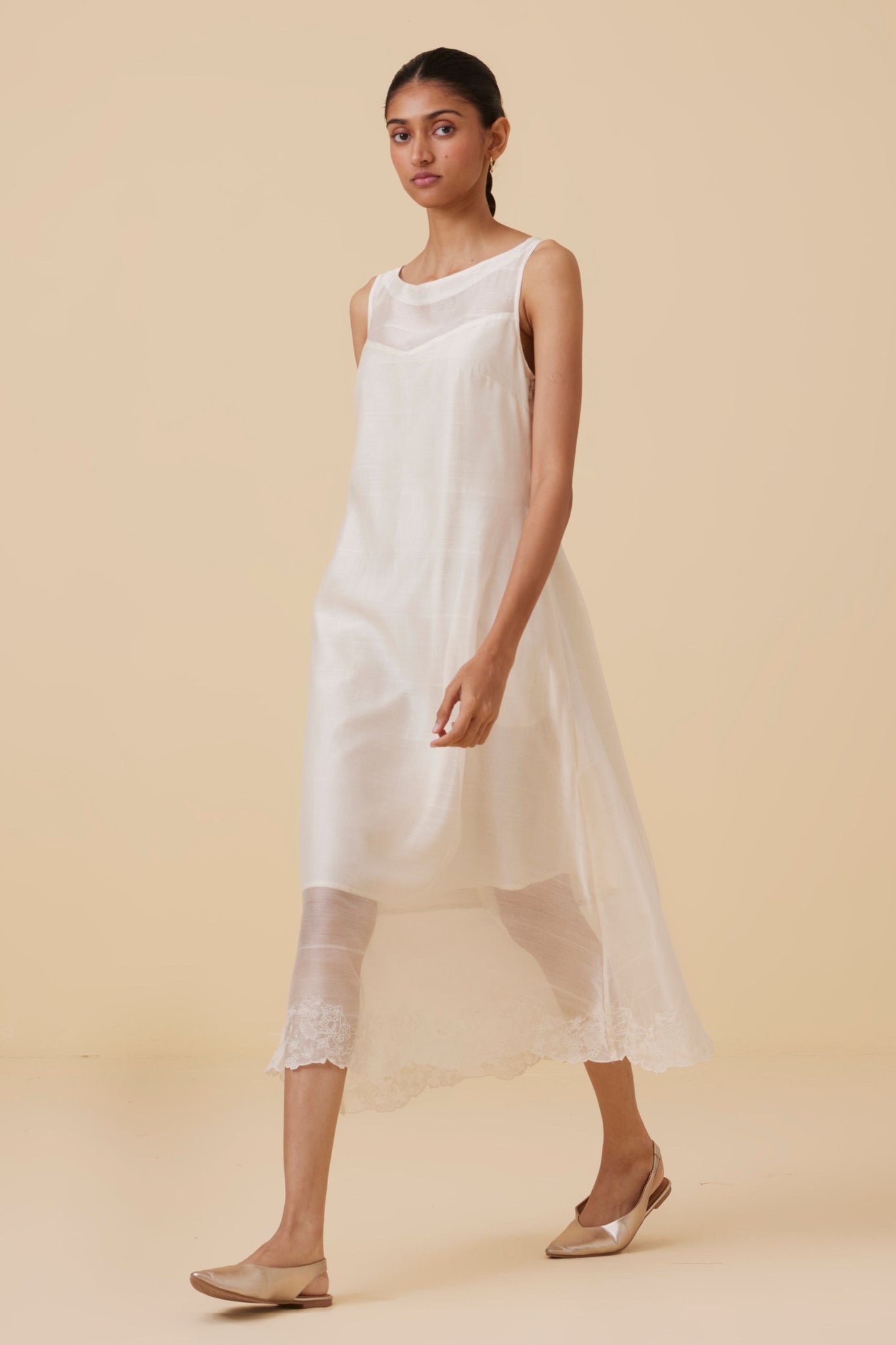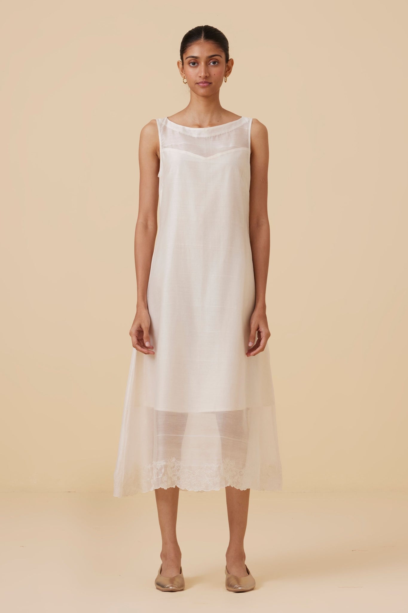 Vintage inspired dress with a delicate embroidery at the hem inspired by lace. This dress is lined as shown in the images. Sleeves can be added on request.