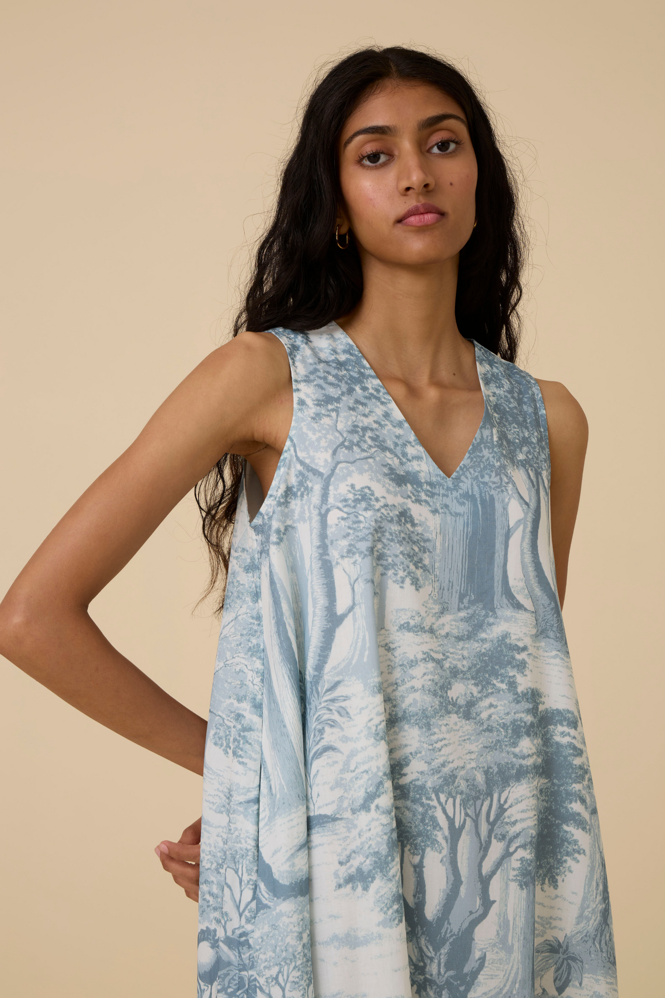 V-neck dress in our signature print. Classic shape that you can wear on repeat. In-seam pockets. This dress is fully lined.