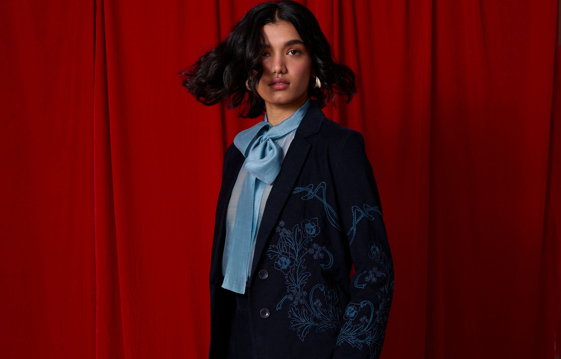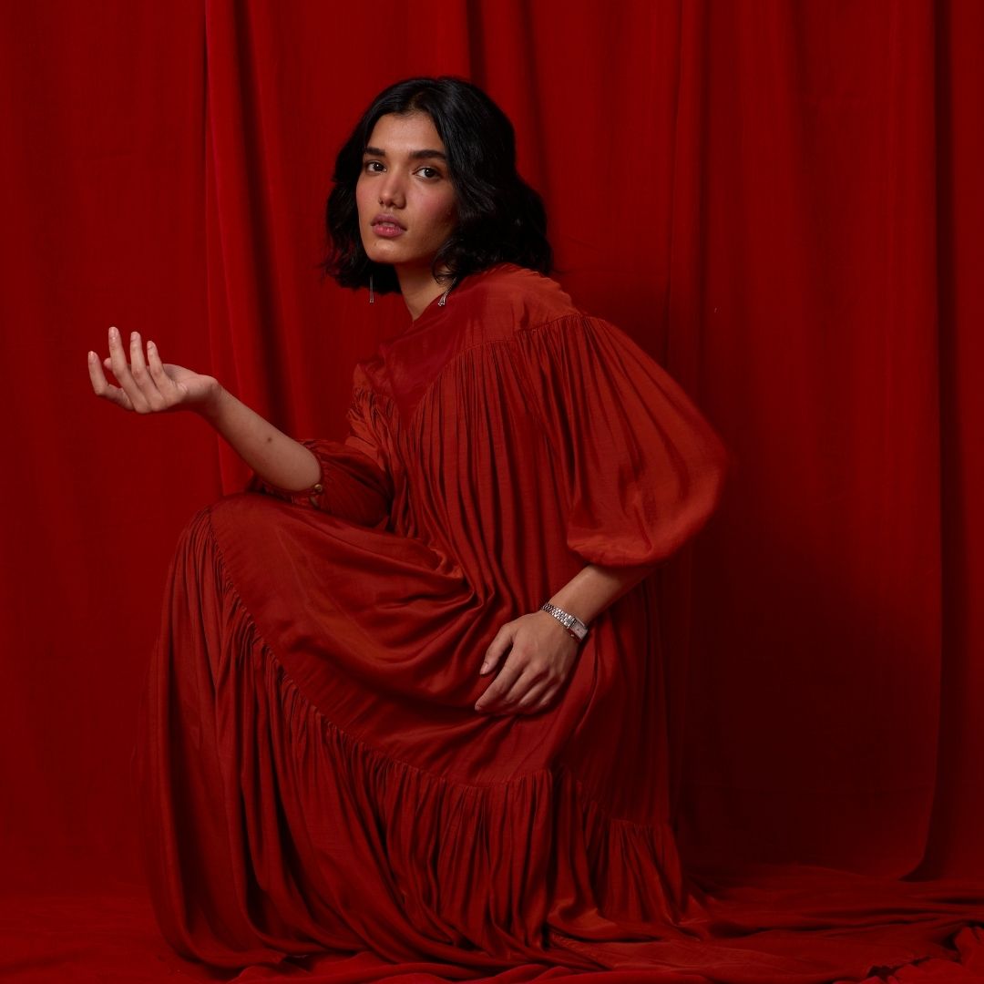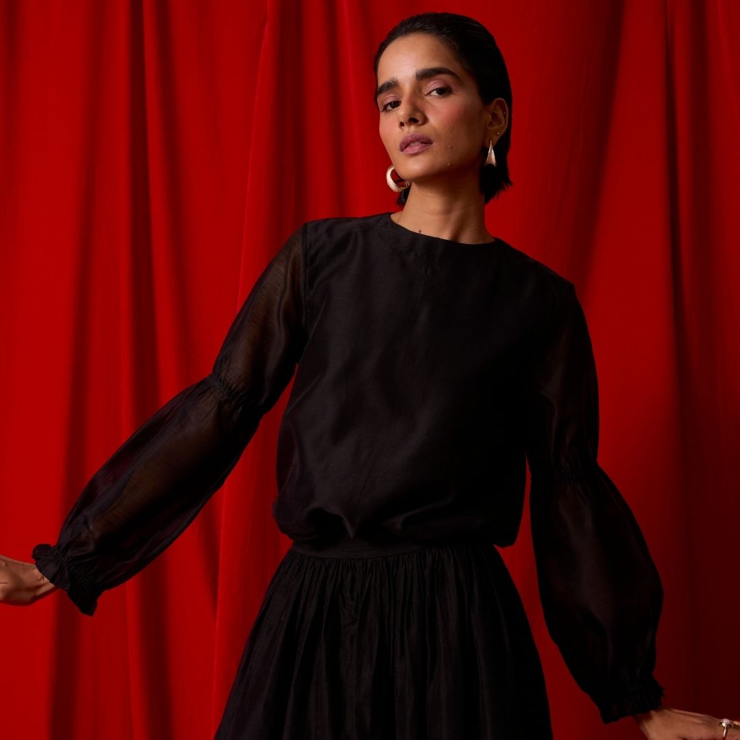 Needlecord, silk, bemberg and chanderi come together in silhouettes that feel both modern and softly historic.