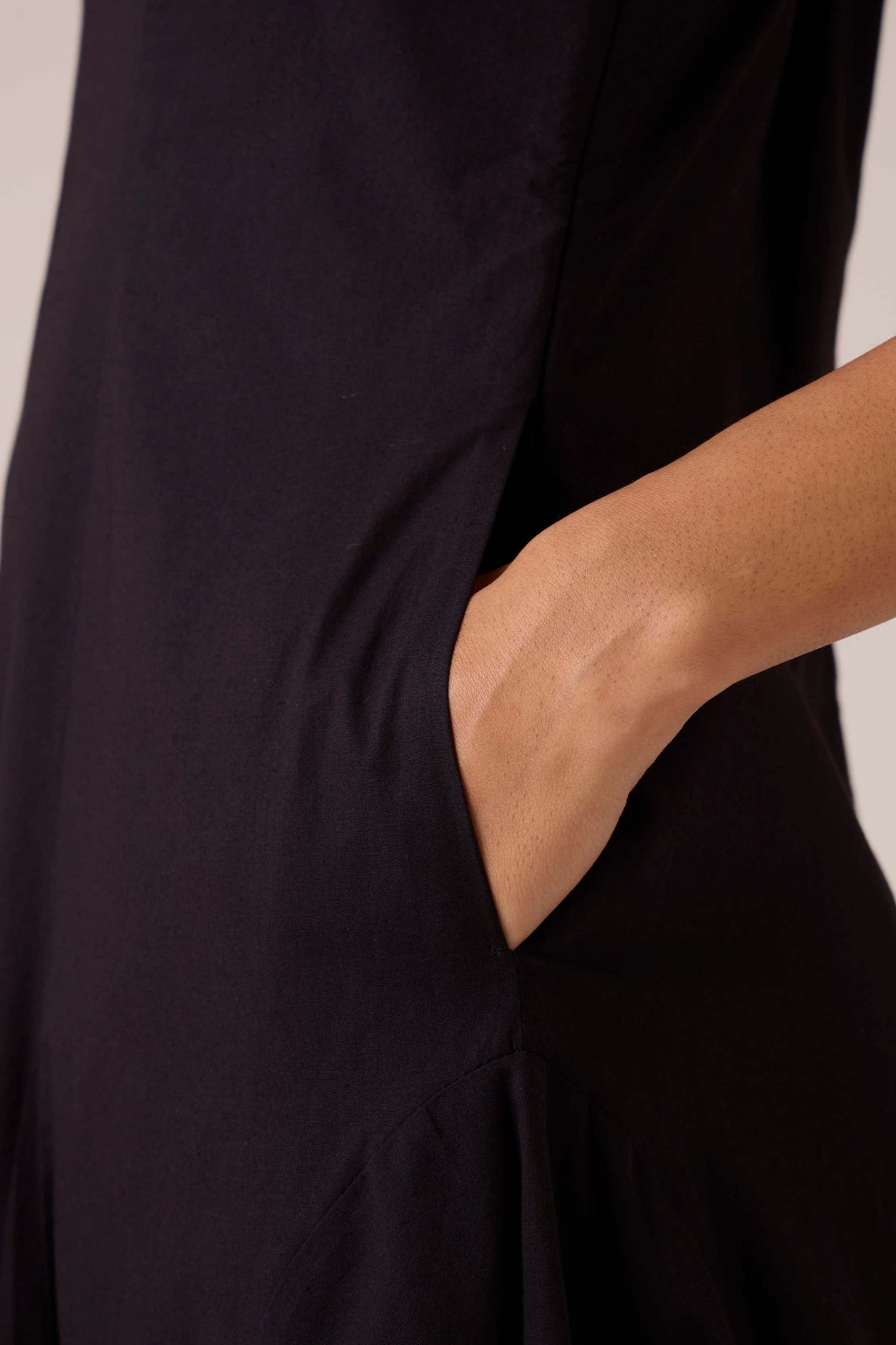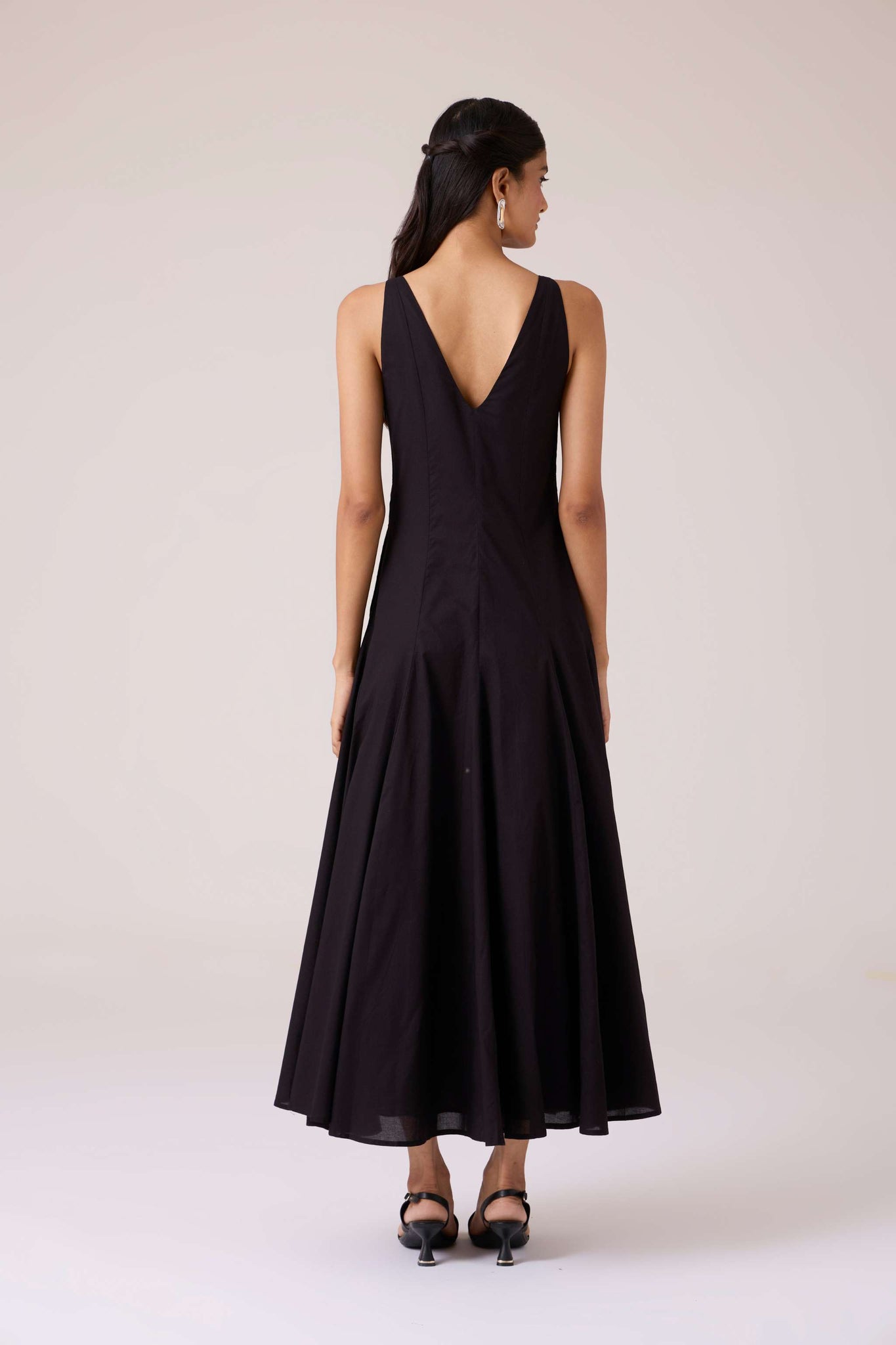 Clean planes, long lines. A V-neck dress pared back to structure, free of embellishment, steady in cut.