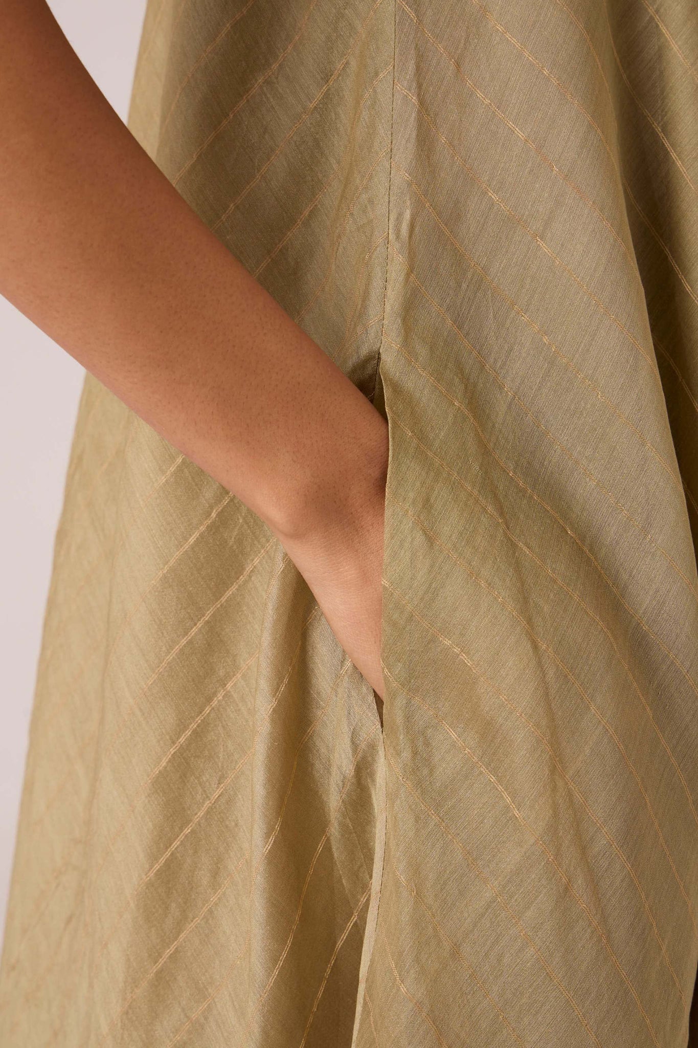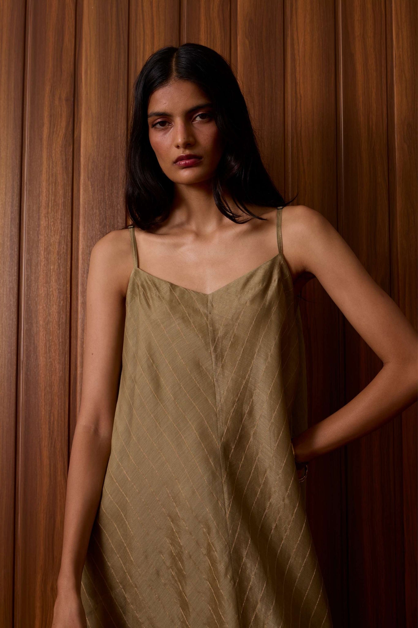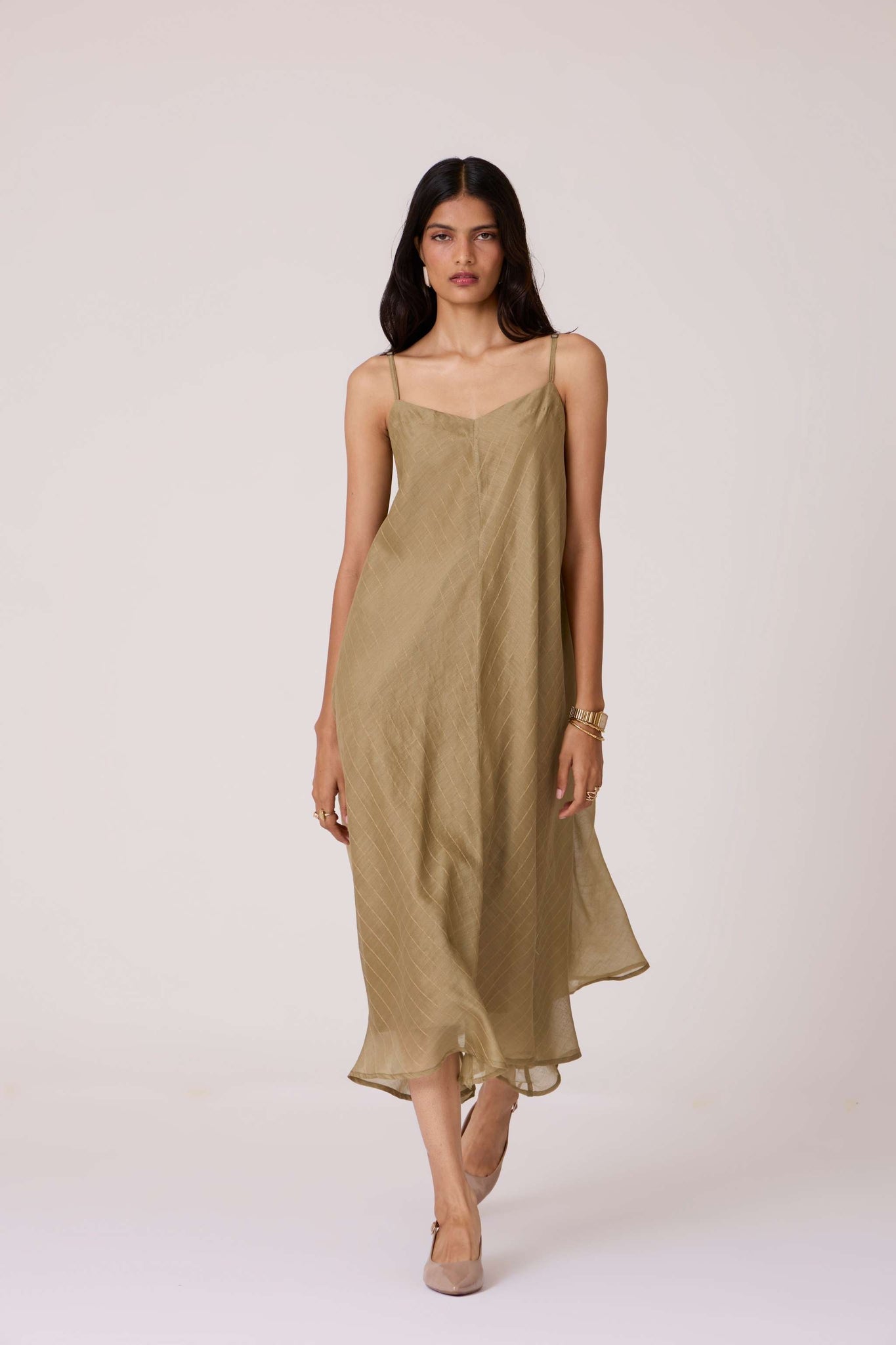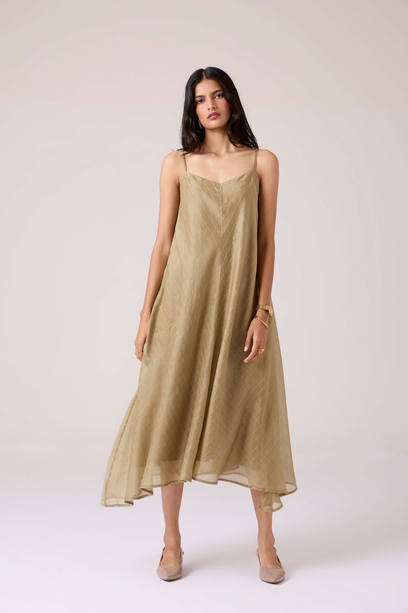 An easy sweep of fabric, cut with a handkerchief hem. Adjustable straps temper the flow with precision.
