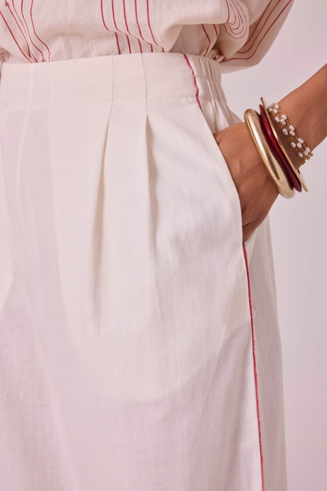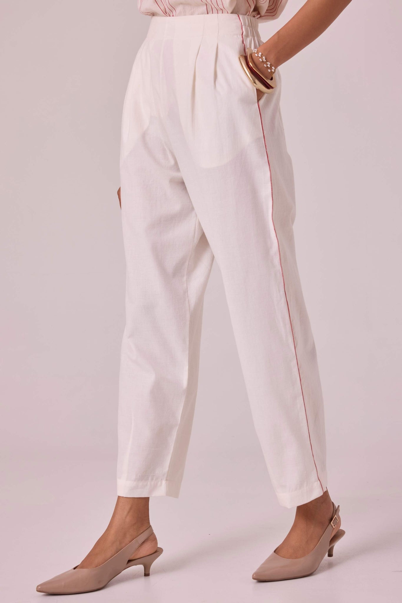 - Mid waist cocoon pants in fine handwoven cotton