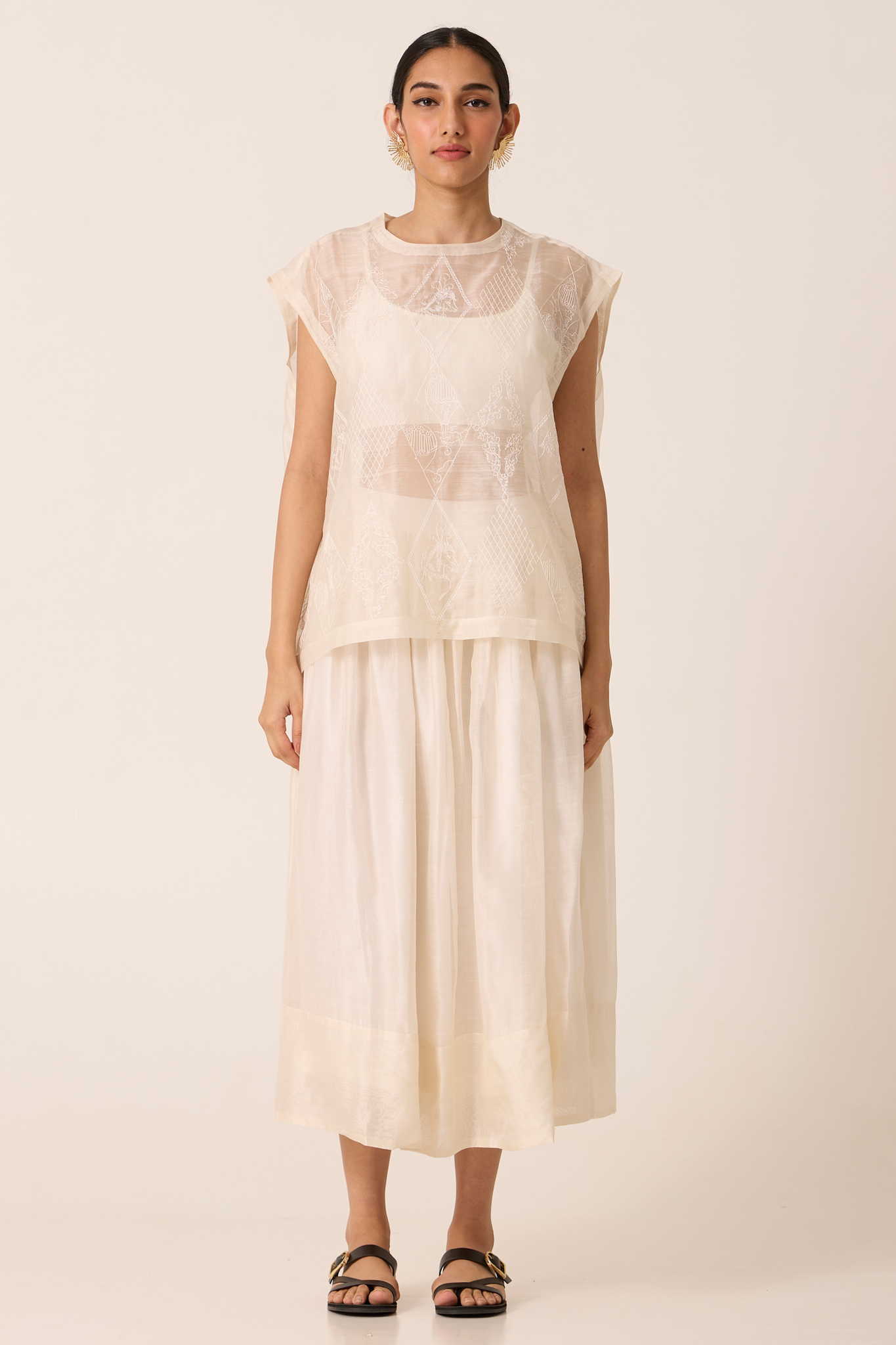 A modern heirloom. Boxy fit top with masterful hand embroidery done in our studio. Drop shoulder.