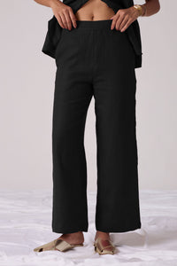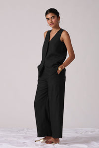 Modern day pant suit crafted from linen cotton.
