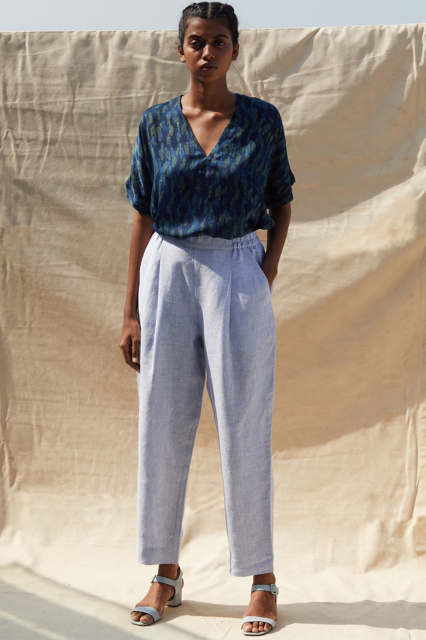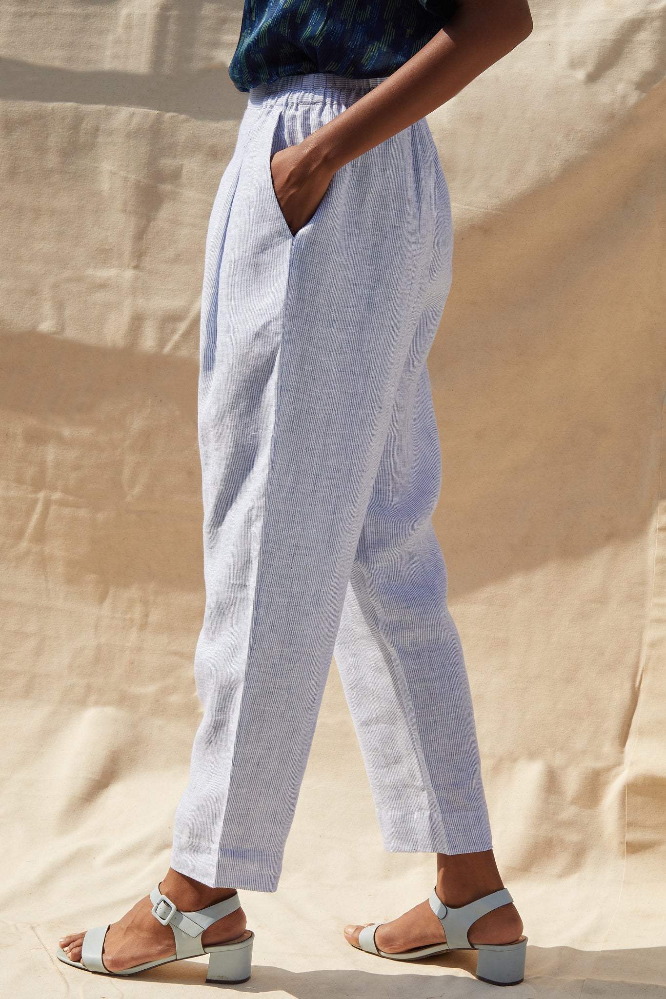 Relaxed linen pants. Slightly tapered, ankle-skimming legs. Clean waistband with an elasticated back. Front pleats with slash pockets.